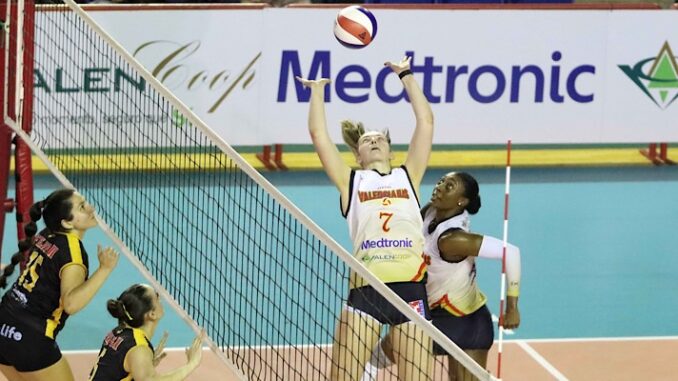 En la cancha Rafael G. Amalbert, las Valencianas sumaron los tres puntos disponibles al superar a Corozal con marcadores de 25-18, 25-19, 18-25, 25-22.